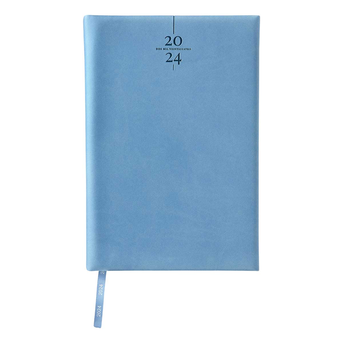 Agenda diaria con 186 hojas. Contiene datos personales, calendarios 2023-2024-2025, planeador 2024, presupuesto de gastos, seguimiento de nuevos hábitos, organizador de tareas, planeador de proyecto y días festivos. Incluye caja individual.