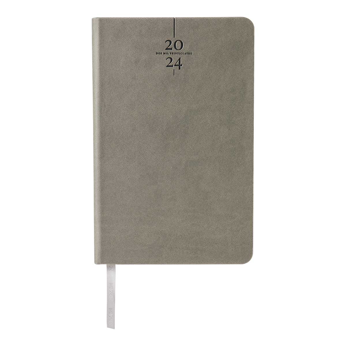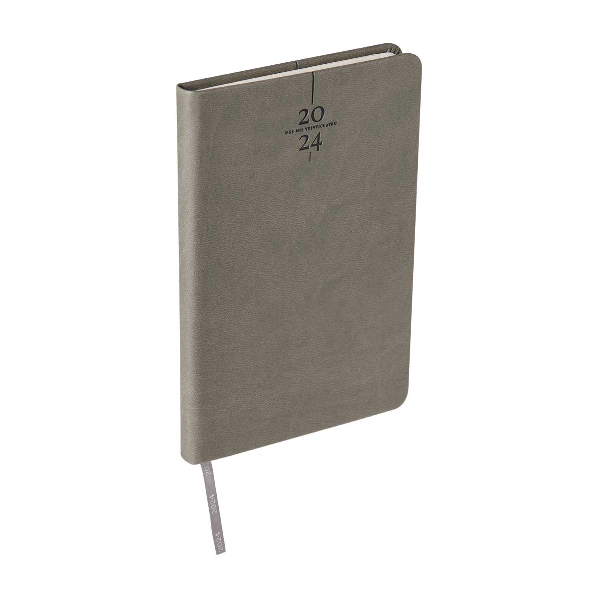Agenda semanal con 80 hojas. Contiene datos personales, calendarios 2023-2024-2025, planeador 2024, presupuesto de gastos, seguimiento de nuevos hábitos, organizador de tareas, planeador de proyecto y días festivos. Incluye caja individual.