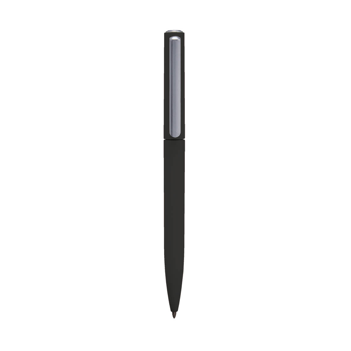 Bolígrafo con terminado rubber y clip metalizado. Mecanismo twist.