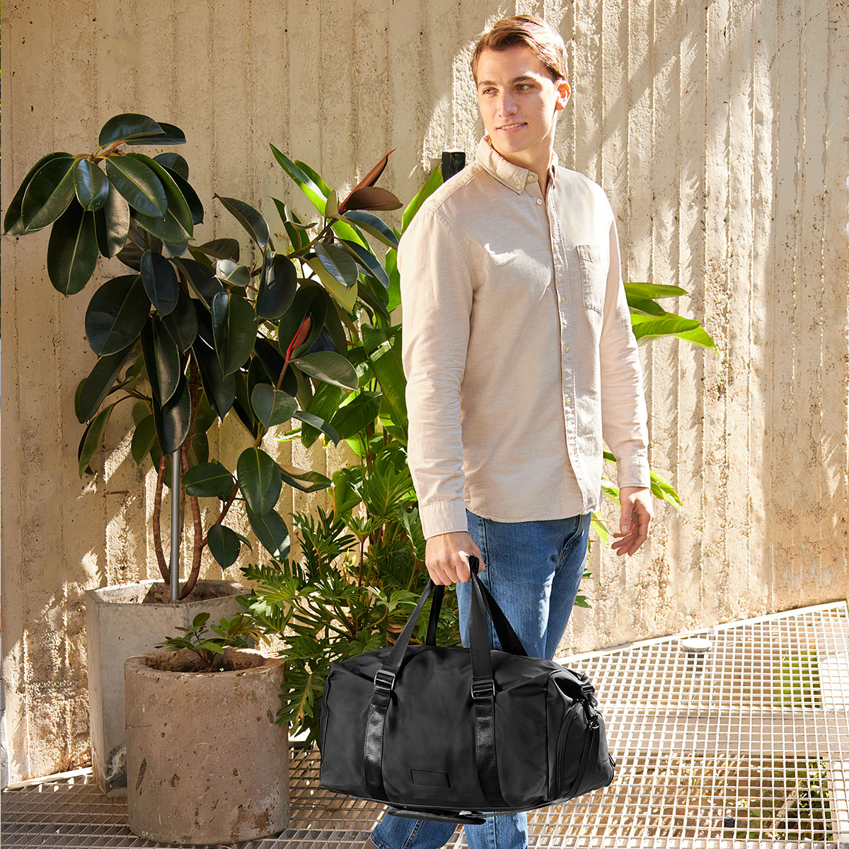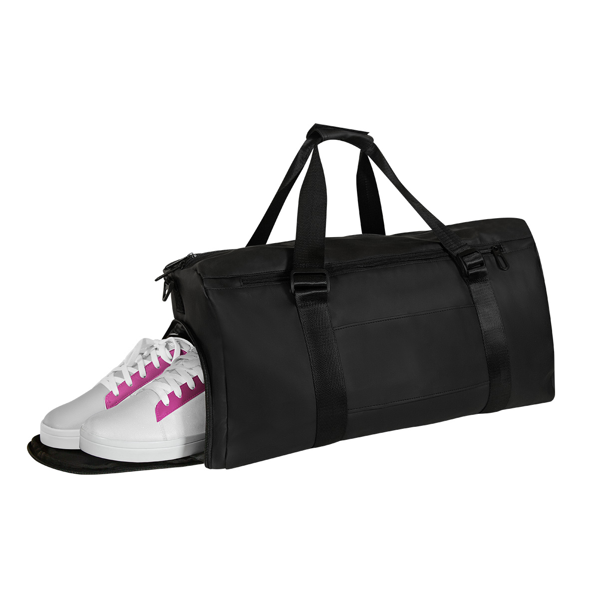 Maleta con diseño deportivo. El compartimento principal con cierre. Con un bolsillo interno con cierre y un bolsillo interno simple. El bolsillo lateral con zapatera y el bolsillo trasero con forro.