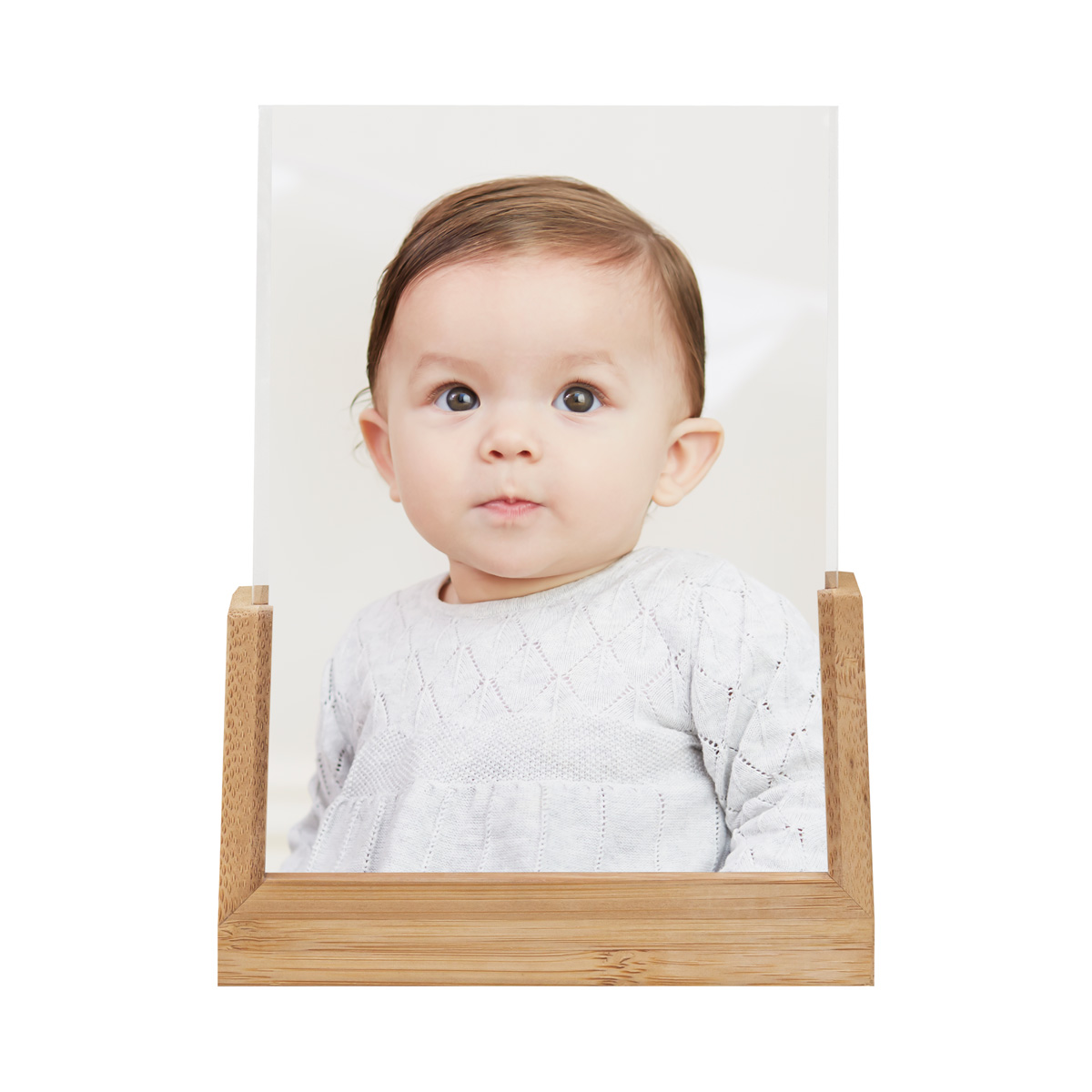Portarretrato con diseño minimalista, su placa de acrílico permite cambiar fácilmente tus fotografías. Apto para foto en formato vertical y tamaño de 12 x 15.7 cm.