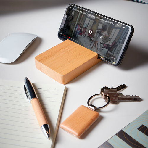 Incluye bolígrafo, llavero, base para smartphone y caja de regalo.